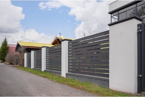 Модульный забор под «жалюзи» выглядит объемно и одновременно «легко».