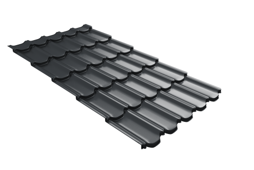 Металлочерепица квинта плюс Grand Line c 3D резом 0,5 Drap RAL 7016 антрацитово-серый