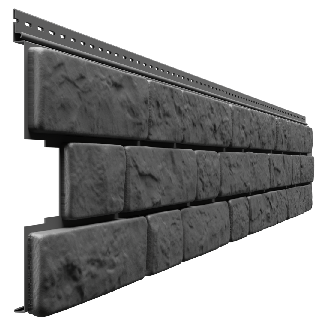 Панели под камень выполнены методом экструзии с последующей термоформовкой. Серия включает две коллекции: BERGART, имитирующая натуральный камень во фламандской кладке, и новая коллекция ROCKY с текстурой слоистого песчаника.